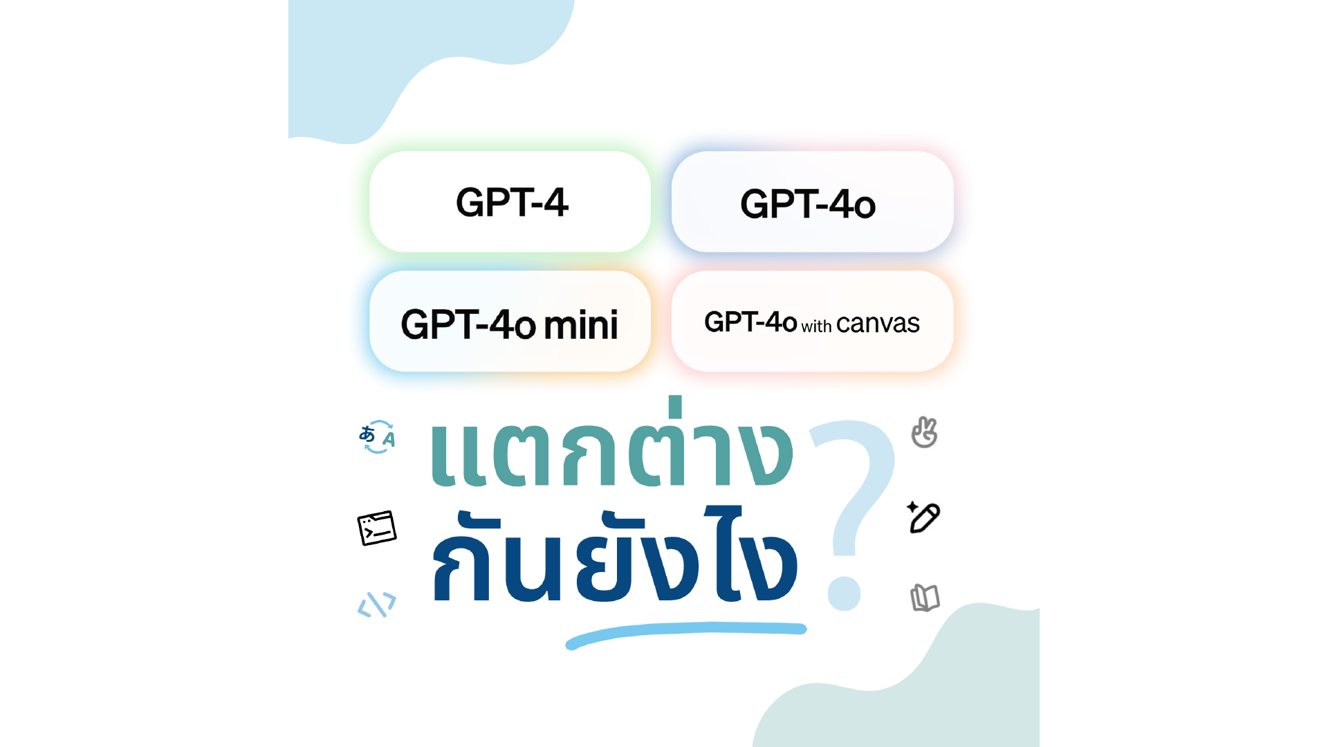 หลายคนคงได้ยินชื่อ ChatGPT GPT-4, GPT-4o, GPT-4o Mini และ GPT-4o with Canvas กันมาบ้าง แต่ละตัวแตกต่างกันอย่างไร มาดูในโพสต์นี้ได้เลย
